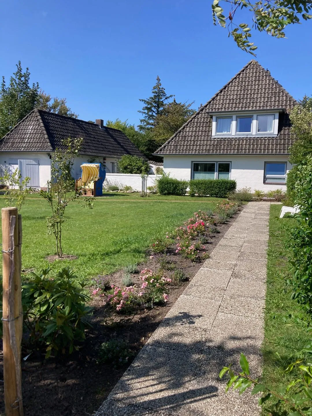 Ankommen, durchatmen, zusammen sein: Die Heidelodge verbindet nordfriesische Gelassenheit mit komfortabler Großzügigkeit. Auf ca. 235 m² finden Familien und Freunde viel Raum – ein lichter Wohn-/Essbereich für lange Tafelrunden, ein Kaminzimmer für gemütliche Abende und 5 Schlafzimmer mit variierbaren Doppelbetten plus 2 Kinderbetten für flexible Schlafarrangements. 3 Bäder sorgen dafür, dass morgens alle entspannt in den Tag starten. Nach Sauna-Zeit (münzbetrieben) geht’s in den windgeschützten Innenhof oder auf die begrünte Terrasse – der Garten (ca. 2.500 m²) mit hauseigenen Strandkörben ist Ihr privates Stück Amrum. Praktisch: WLAN, Parkplätze am Haus sowie Waschmaschine & Trockner (Münzbetrieb); Bettwäsche & Handtücher sind vorhanden. Einkauf, Bäcker & Co. erreichen Sie fußläufig – ideal für den Inselalltag ohne Hektik. Bis zu 10 Personen wohnen hier bequem. Hunde sind ebenso willkommen. Das Haus ist Rauchfrei.