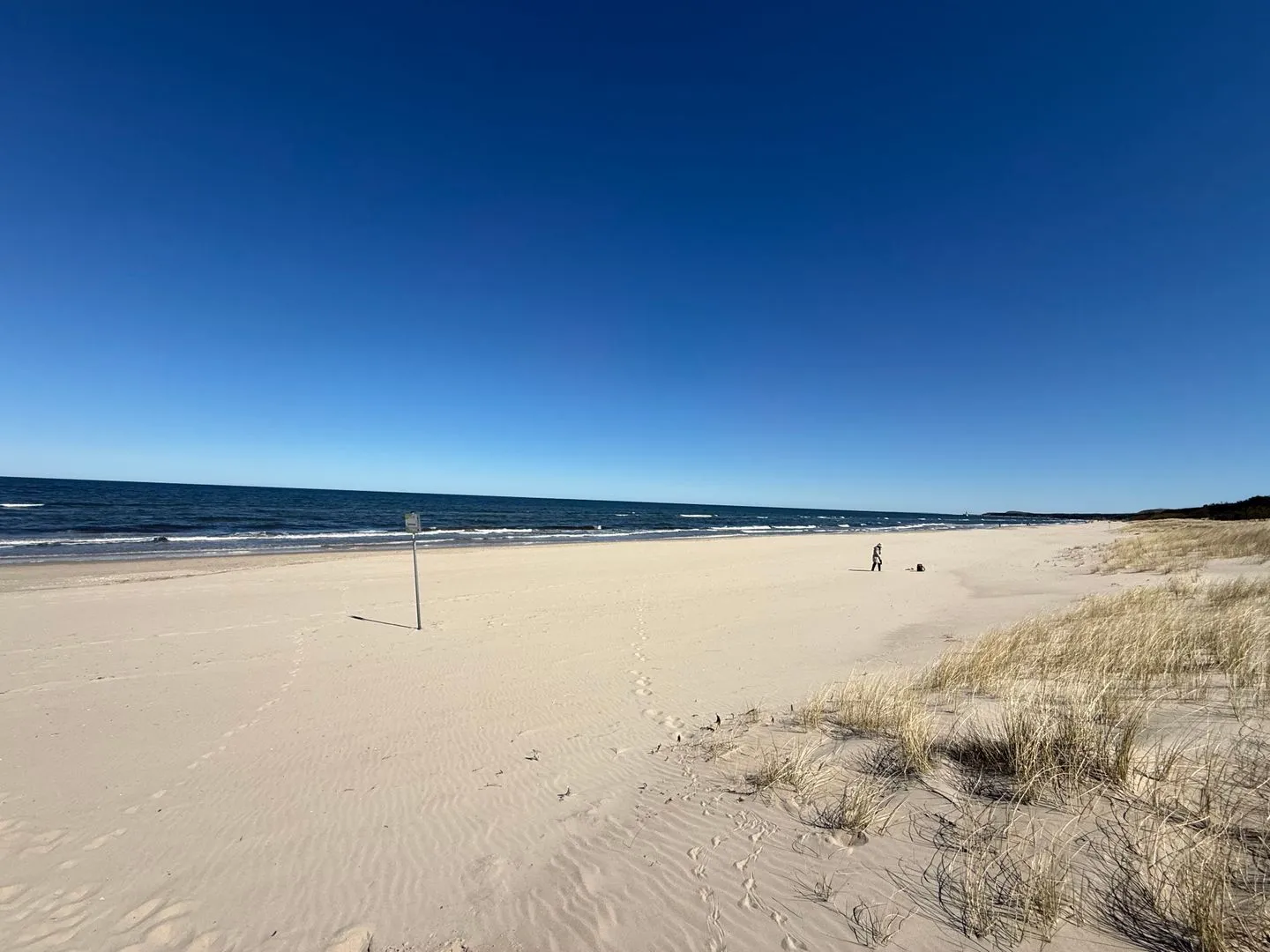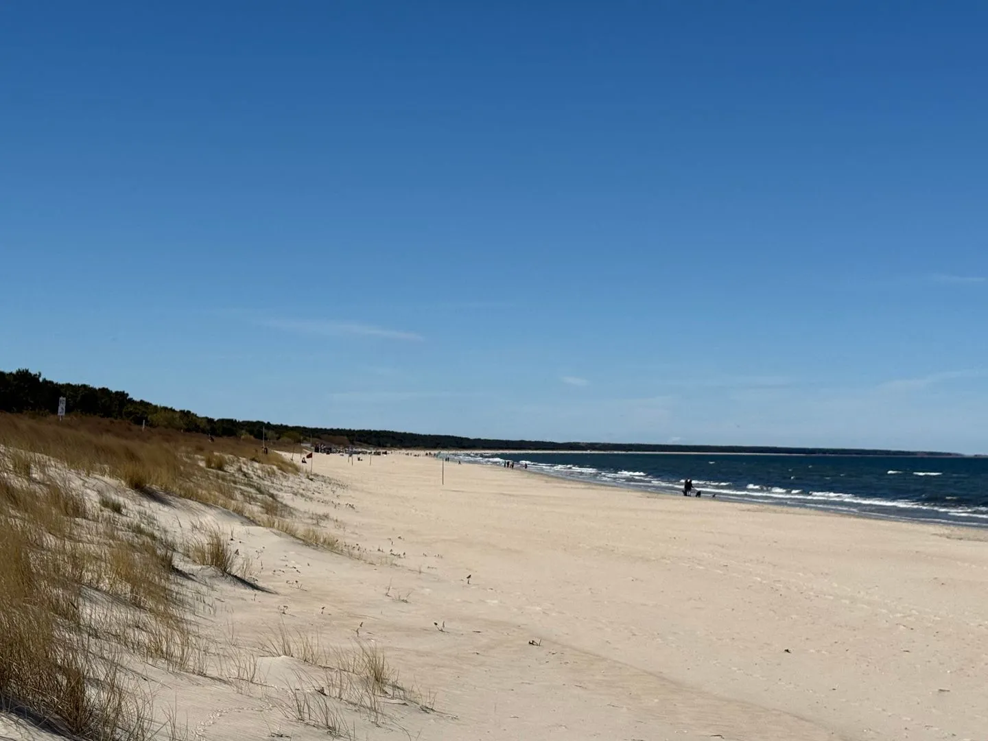 Und das Auto? Das bleibt draußen. Ein Parkplatz steht außerhalb der Anlage bereit. Drinnen sind die Wege kurz, die Kinder laufen sicher, die Eltern atmen durch. Drei Minuten zu Fuß – schon liegt der Strand vor Ihnen: feinsandig, breit, einladend. Links die Surfschule, rechts das Beachvolleyballfeld, ein Stück weiter der FKK-Bereich. So fühlt sich Freiheit an.