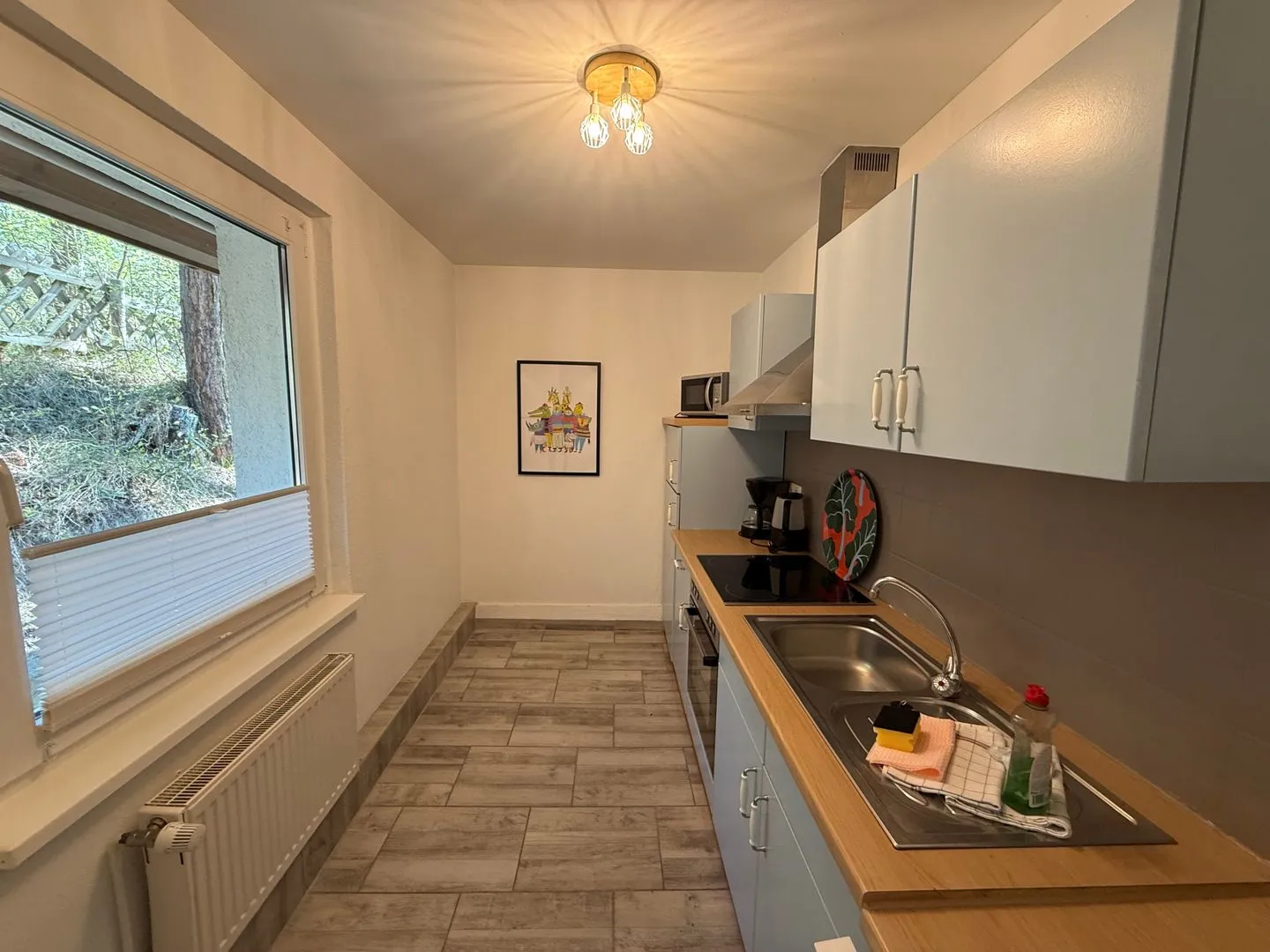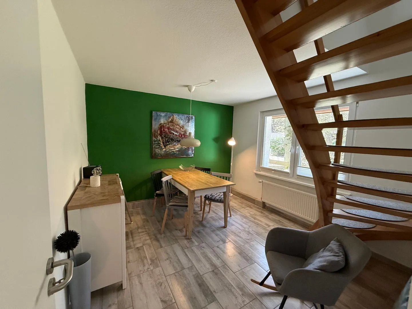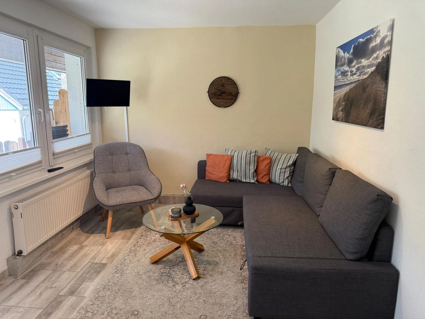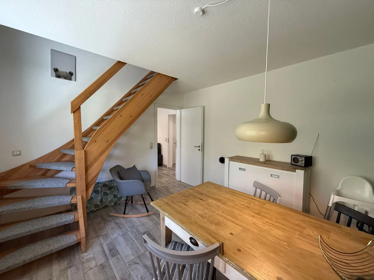 Im Erdgeschoss lädt der helle Wohnbereich mit gemütlicher Sitzecke und Essplatz zum Verweilen ein. Die Küche ist vollständig ausgestattet und eignet sich wunderbar für gemeinsame Kochabende. Durch die große Terrassentür gelangen Sie direkt auf die Terrasse, wo Frühstück in der Morgensonne oder ein entspanntes Glas Wein am Abend zum echten Urlaubsritual werden.