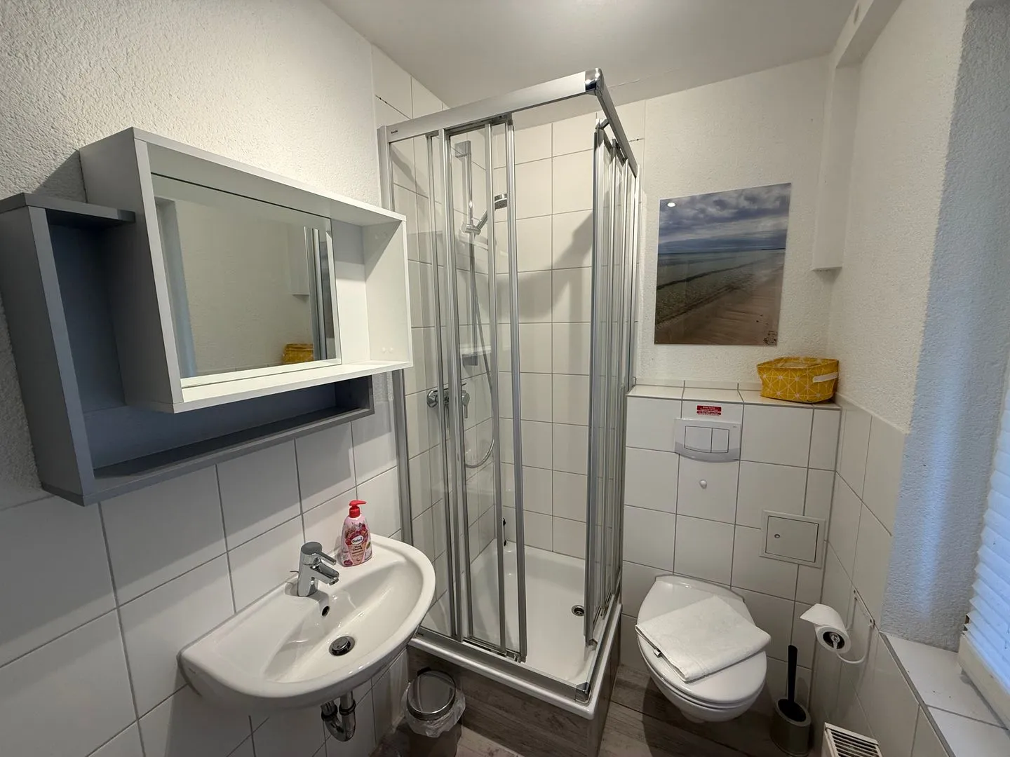 Im Obergeschoss befinden sich zwei separate Schlafzimmer, die sowohl Eltern als auch Kindern Privatsphäre und Rückzugsmöglichkeiten bieten. Ein modernes Bad mit Dusche ergänzt die Ausstattung und sorgt für zusätzlichen Komfort.