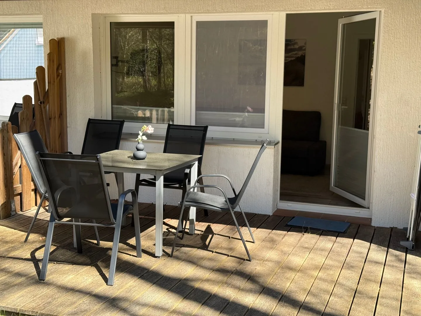 Im Erdgeschoss lädt der helle Wohnbereich mit gemütlicher Sitzecke und Essplatz zum Verweilen ein. Die Küche ist vollständig ausgestattet und eignet sich wunderbar für gemeinsame Kochabende. Durch die große Terrassentür gelangen Sie direkt auf die Terrasse, wo Frühstück in der Morgensonne oder ein entspanntes Glas Wein am Abend zum echten Urlaubsritual werden.