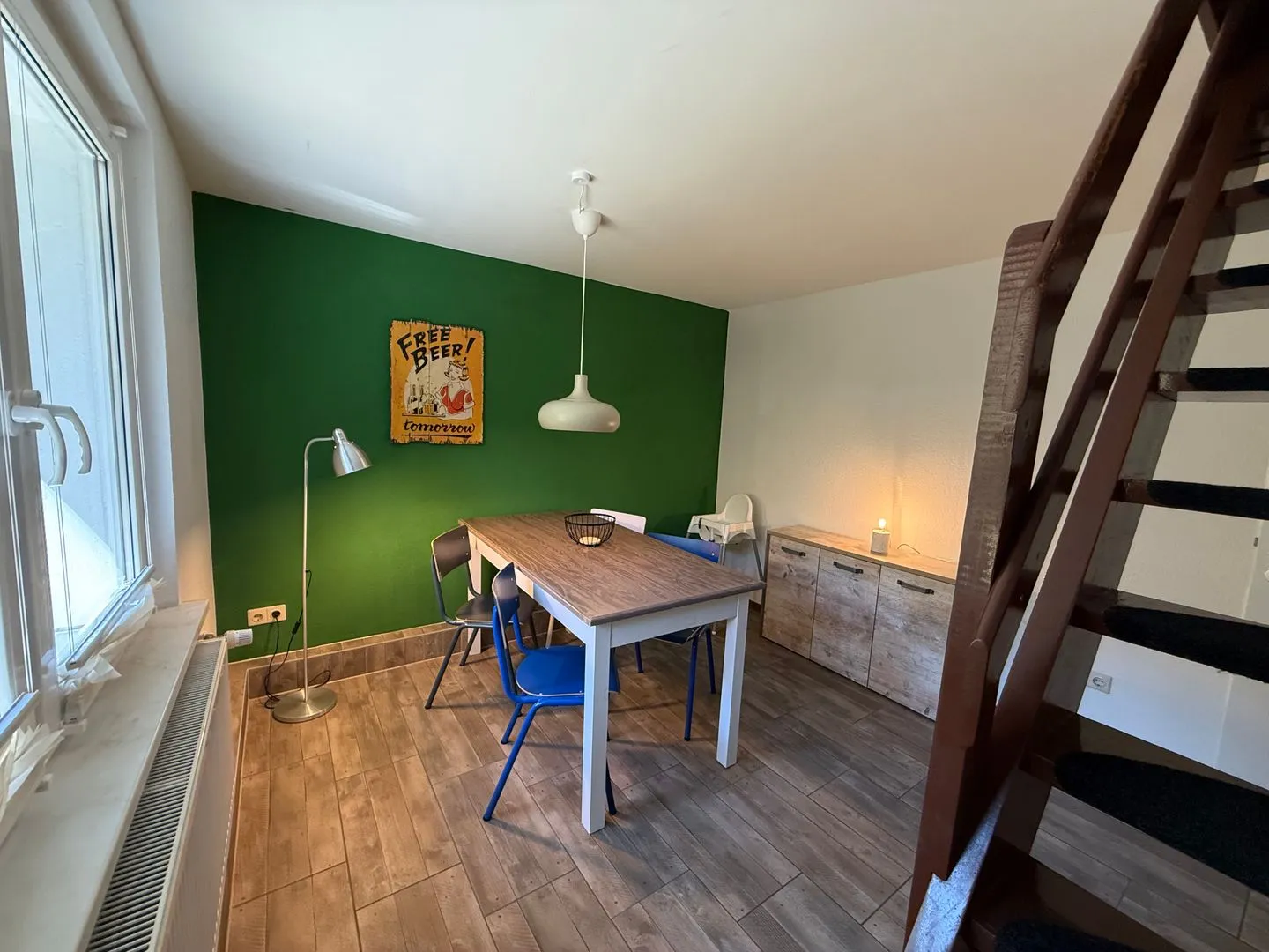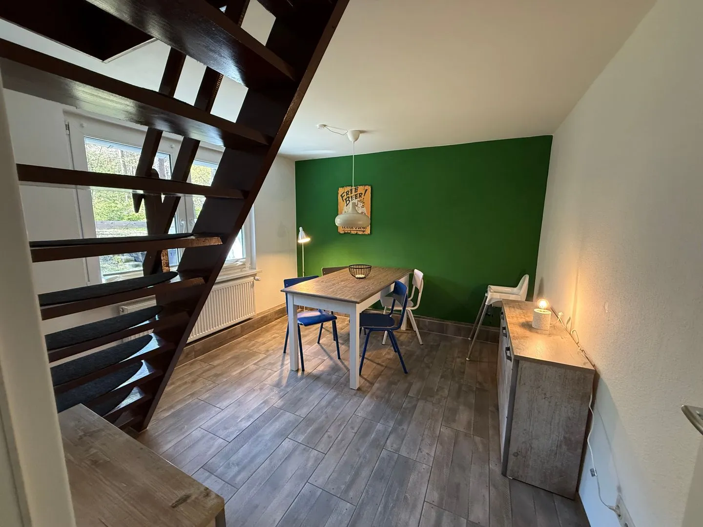 Im Erdgeschoss lädt der helle Wohnbereich mit gemütlicher Sitzecke und Essplatz zum Verweilen ein. Die Küche ist vollständig ausgestattet und eignet sich wunderbar für gemeinsame Kochabende. Durch die große Terrassentür gelangen Sie direkt auf die Terrasse, wo Frühstück in der Morgensonne oder ein entspanntes Glas Wein am Abend zum echten Urlaubsritual werden.